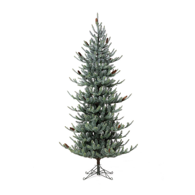Decorating for Christmas has never been easier with this pre-lit Park Hill slim line Blue Spruce. 7.5' tall, 46" at base, 400 clear LED lights and 755 tip count.