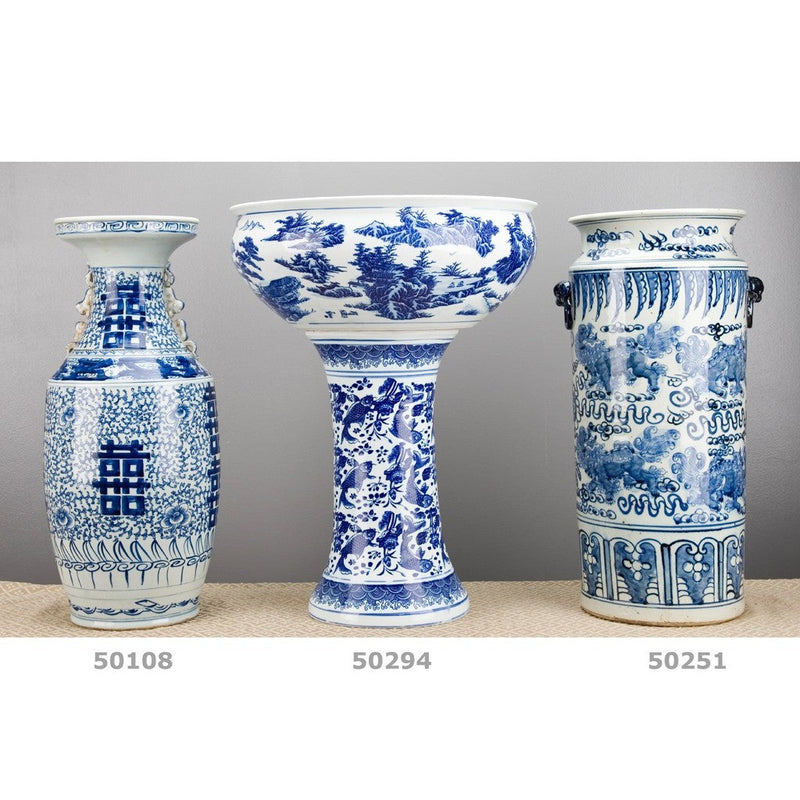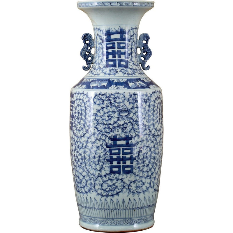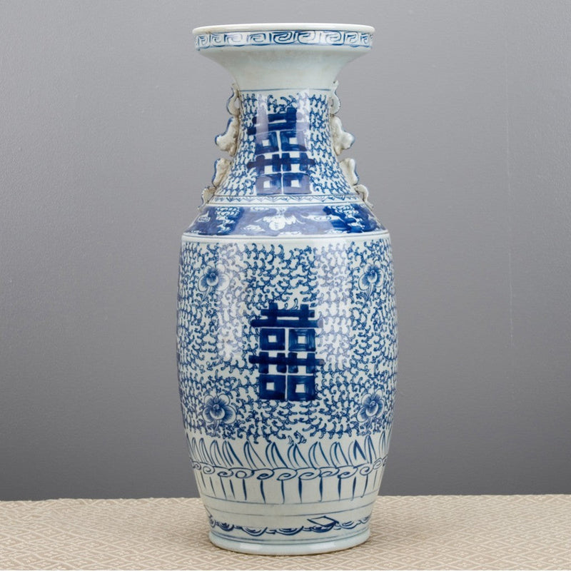 • 24"H X 10"W BLUE AND WHITE VASE-DOUBLE HAPPINESS