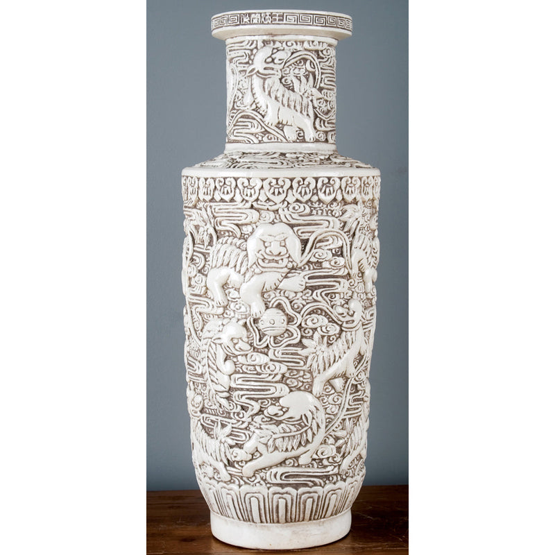 Lovecup Carved Porcelain Vase 27" Tall x 11" Wide