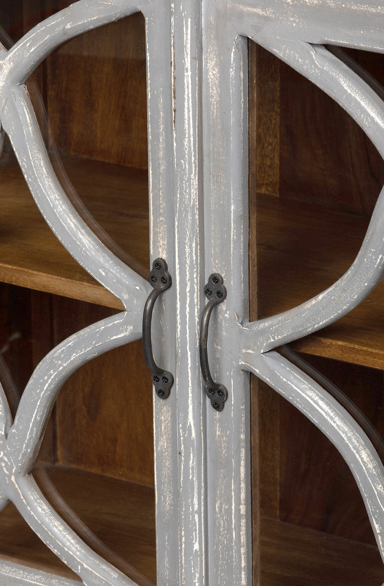 Our Chantilly Sideboard perfectly embodies the Country French style of juxtaposed elegance and provincial charm with its distressed wood finish and ornately decorated glass doors. Behind the graceful cabinet facade is ample storage, perfect for additional place settings in a dining room or for concealing electronics in the den. This solid mango wood sideboard is hand painted, making each piece distinctive.