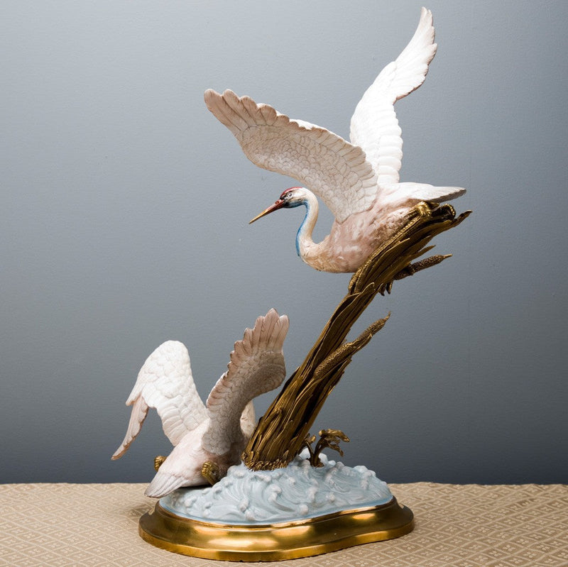 Lovecup Double Seagull Ceramic Figurine with Bronze L352