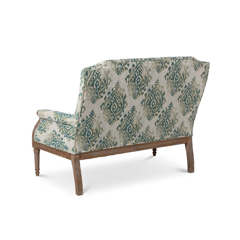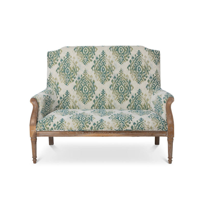 This dreamy upholstered loveseat is fit to steal the show in a bedroom or living space, thanks to its alluring greens and blues. Layer it with other patterns in rugs and wallpapers for eye-catching vibes, or keep things serene with a neutral palette—either way, its high back and rolled arms evoke a classic allure.