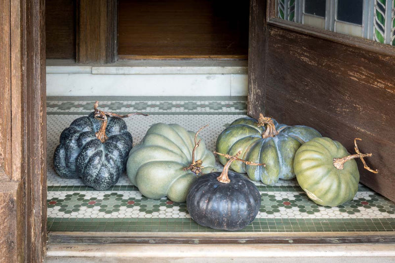 Showcasing a soft, monochromatic color palette, this collection of Park Hill green heirloom pumpkins is perfect for creating a variety of stunning seasonal displays. Set of 5, assorted sizes, shapes, and colors.