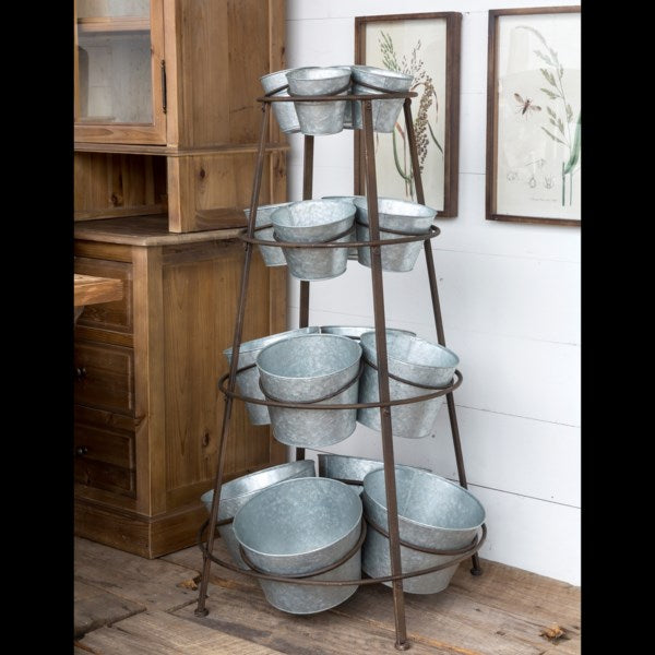 Graduated metal tubs to display anything from flower