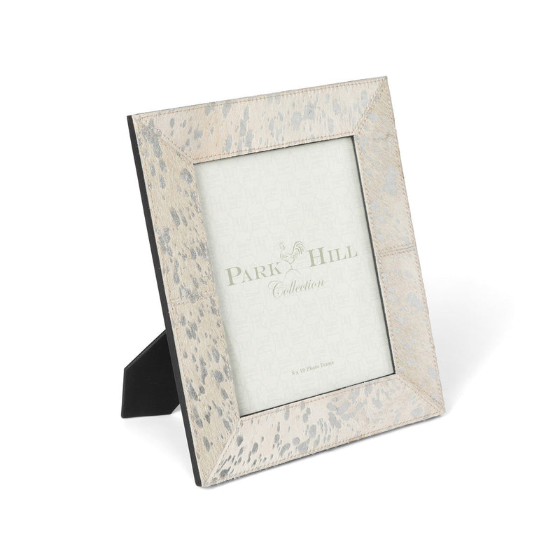 Modern and organic, these paint spattered hair-on hide picture frames are a unique and interesting way to display your photo memories while adding panche to your bookshelf or desktop. Use alone or with the other sizes to complete your gallery. They also make excellent gifts.