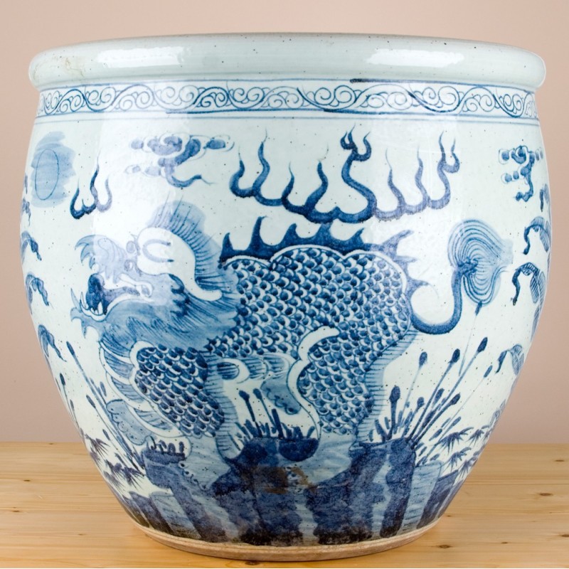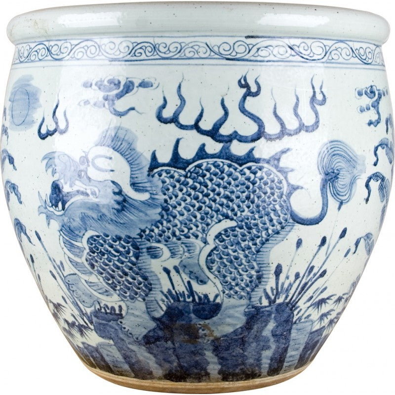 • PORCELAIN FISHBOWL - BLUE AND WHITE DRAGON