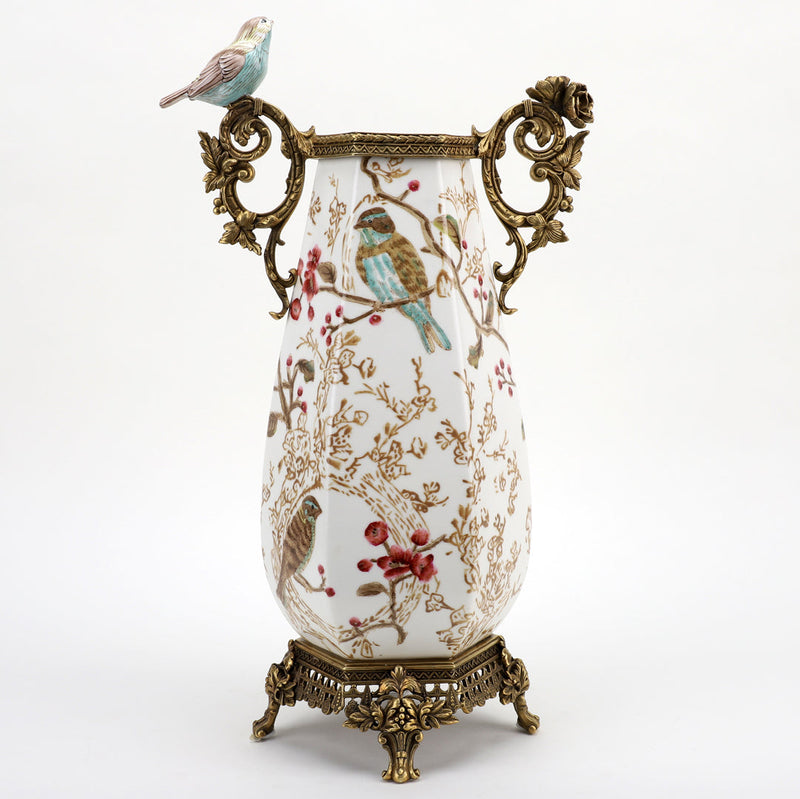 • Vase With Bird And Bronze Ormolu - Robin Morning