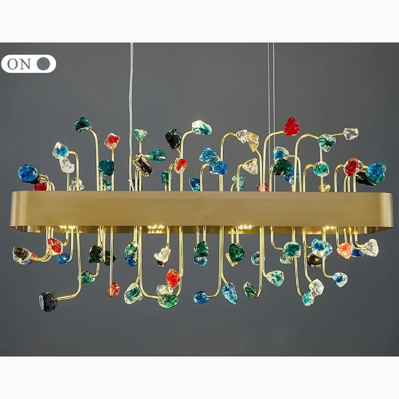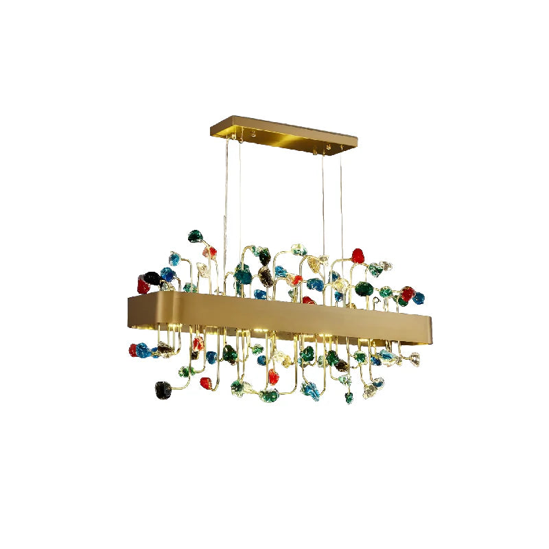 Abbadia San Salvatore | Gold Rectangle Colorful Crystal Chandelier