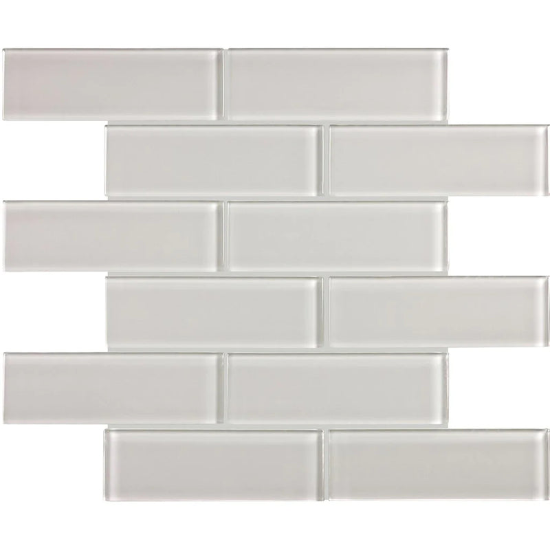 Mist 2"x6" Brick on 11.75"x11.75" Mesh Glass Mosaic Tile Element Series - Aquatica Collection