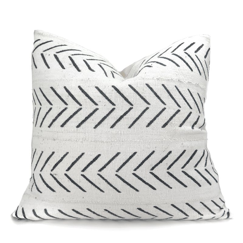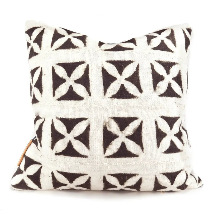 Add a touch of global-inspired charm to your home with this black and white mudcloth pillow. Handcrafted from authentic African mudcloth, each pillow features bold geometric patterns on natural white cotton, creating a timeless tribal design perfect for modern, minimalist, or bohemian spaces.