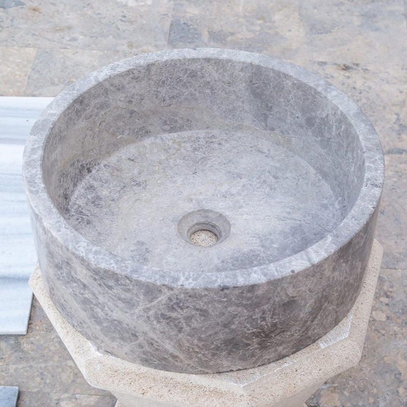 Natural Stone Tundra Grey Marble Above Vanity Bathroom Sink Polished (D)16.5" (H)6" - Modern Aesthetic Marble Sink Bowl Handcrafted in Turkey - Natural Stone Tundra Grey Marble Bathroom Sinks Above Counter.