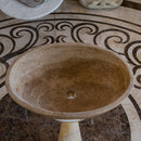 Noce Brown Travertine Natural Stone Oval Above Vanity Bathroom Sink Filled and Polished (W)16" (L)21" (H)6" is Handcrafted in Turkey and suitable for over-countertop installation.