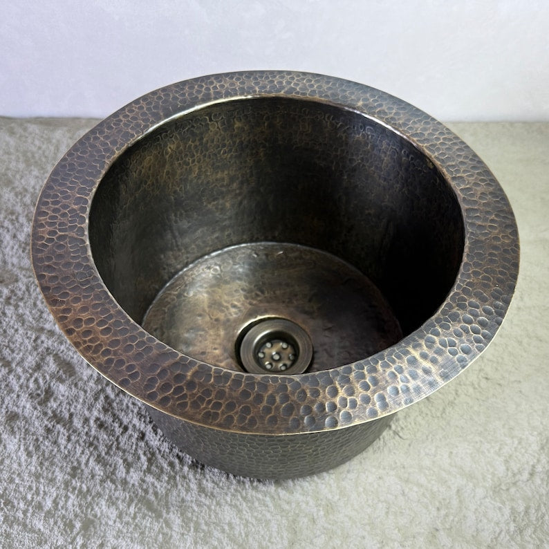 Patina Brass Round Bar Sink, Round Bronze Sink including drain