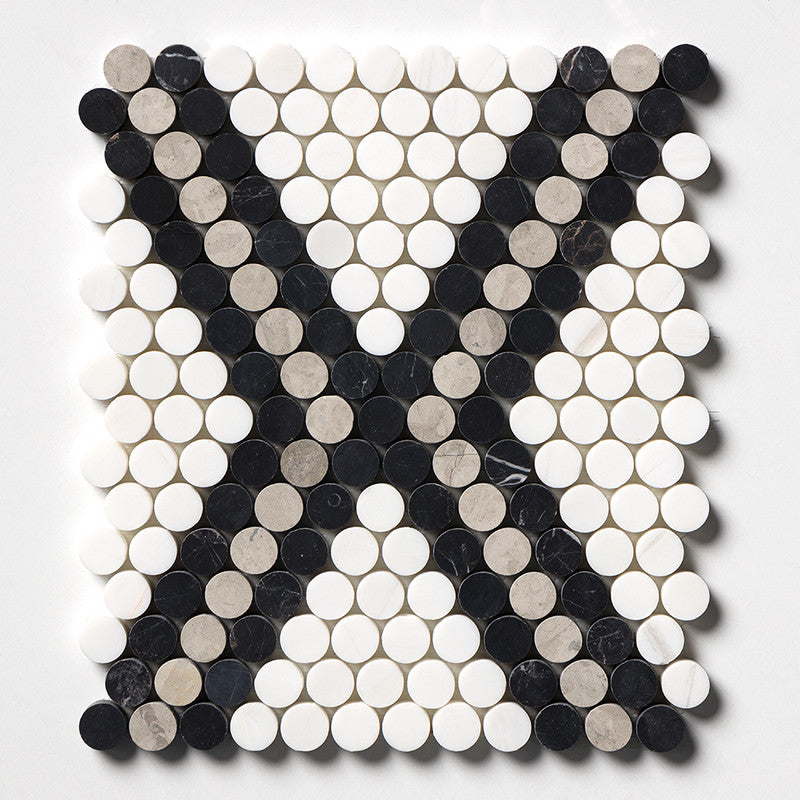 Penny Round 11 27/64"x10 15/64" Honed Diamond 1 Marble Mosaic