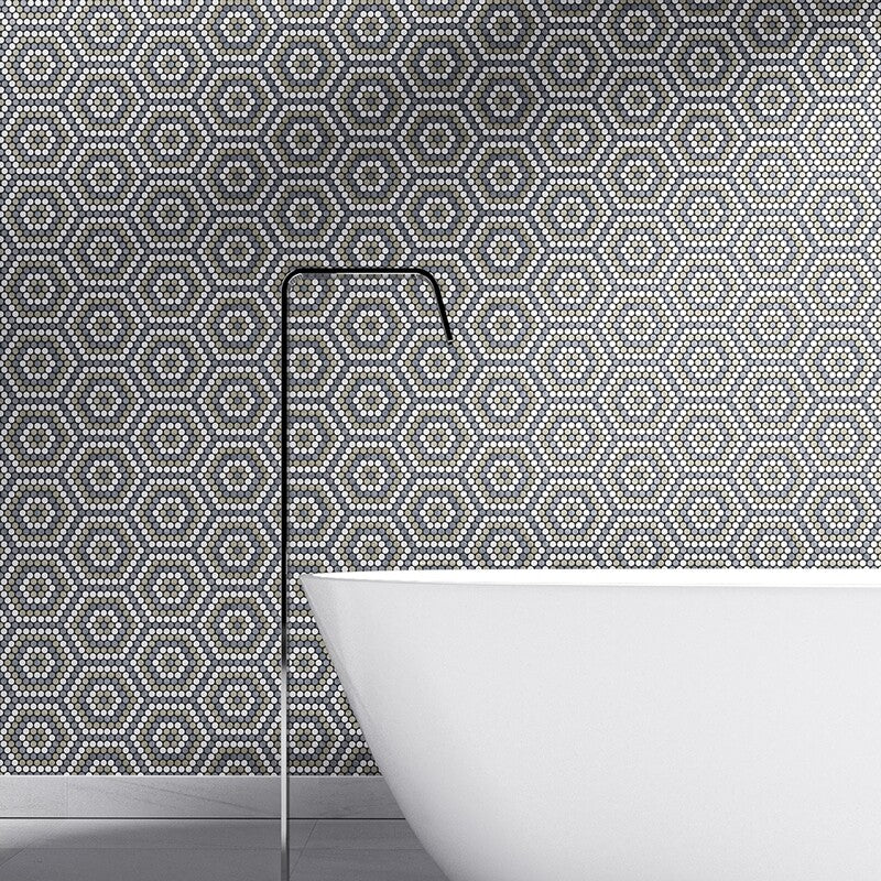 Penny Round 9 1/4"x9 29/64" White, Allure Light, Britannia Honed Marble Mosaic offers;