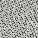 MSI's Penny Round Bianco Glazed Porcelain Mosaic Tiles are retro with a refreshing modern edge. It comes in 11.5" x 11.63" Mesh. Their timeless shape and elegant white color make them exceedingly versatile - complementing traditional to contemporary design styles. Pair them with large format Porcelain tiles for a style-savvy cohesive look or use them alone to add detail and interest to residential floors, walls, counters or backsplashes. The choice is yours and the possibilities are endless. Incredibly durable and easy to care for, this high sheen tile is also recommended for some light commercial, including walls and backsplash. Tiles are prearranged on mesh-backed sheets for simplified installation.