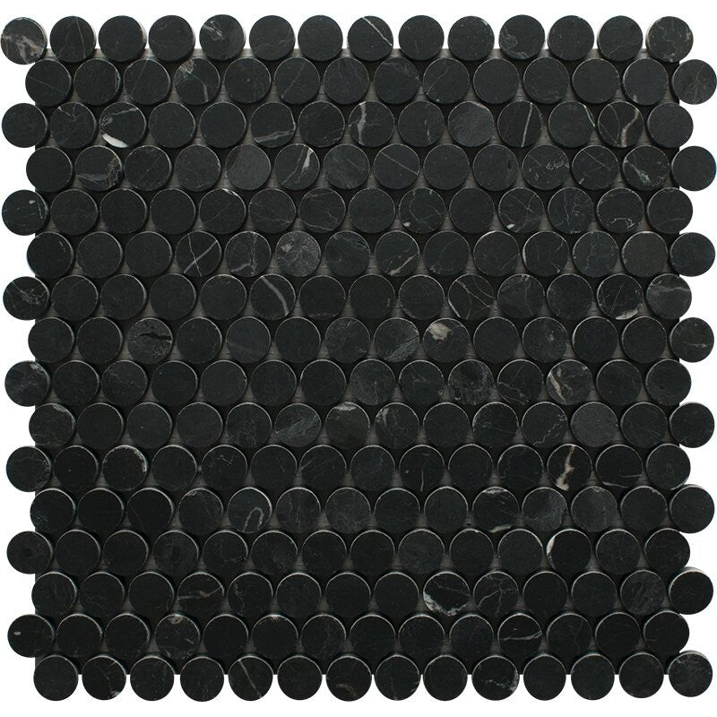 Penny Round Black Honed 11 1/4"x11 3/4" Marble Mosaic