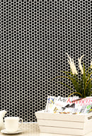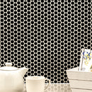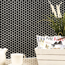 MSI's Penny Round Nero Glazed Porcelain Mosaic Tiles are retro with a refreshing modern edge. It comes in 12.5" x 13.38" Mesh. Their timeless shape and bright black color make them exceedingly versatile - complementing traditional to contemporary design styles. Pair them with large format porcelain tiles for a style-savvy cohesive look or use them alone to add detail and interest to residential floors, walls, counters or backsplashes. The choice is yours and the possibilities are endless. Incredibly durable and easy to care for, this high sheen tile is also recommended for some light commercial and heavy commercial applications, including walls and backsplash. Tiles are prearranged on mesh-backed sheets for simplified installation.