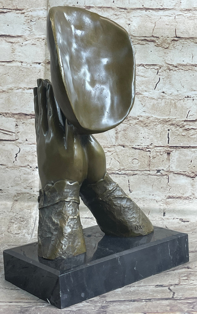 Praying Floating Face Bronze Metal Sculpture Statue Surrealism Dali Decor