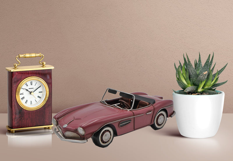 Decorate for any table, desk, or shelf in sporty fashion with Our Rustic 1957 Rose BMW 507 Convertible car. Featuring a rustic iron frame, this charming vintage Classic Car includes a fine detail's. The Rose metal exterior seat are finished in brown colors. For more than 20 years, European Finery has been providing high quality sculpture, accessories, and decor for any room for its customers' homes. Based in New York area, We grown to become one of the largest importers and wholesalers of home decor and hand made sculptures in the country. Whether you're looking for accent Sculpture, wall decor, vintage Toys, or just about any outdoor lifestyle sculpture , We Became a proven and trustworthy name that has become synonymous with superiority.