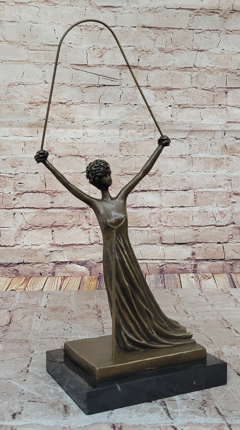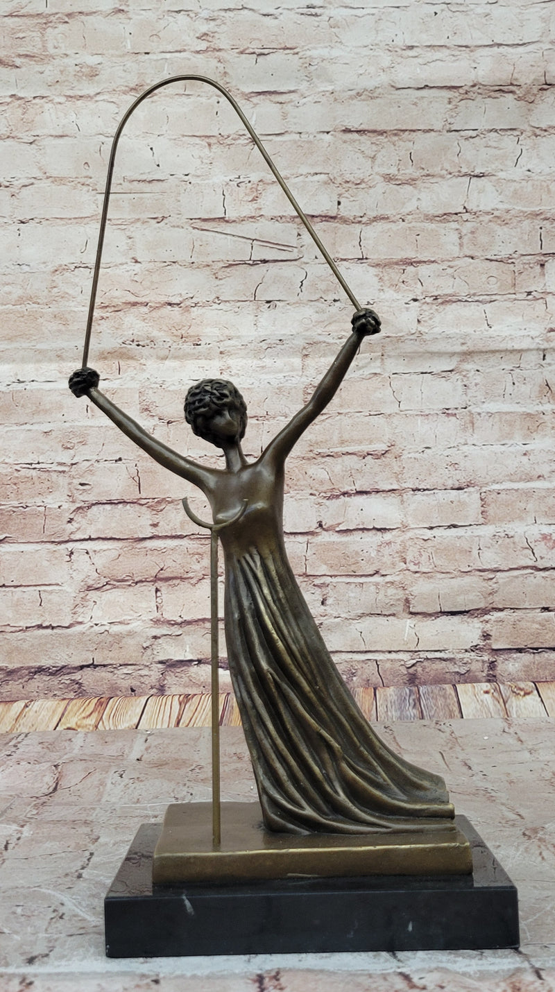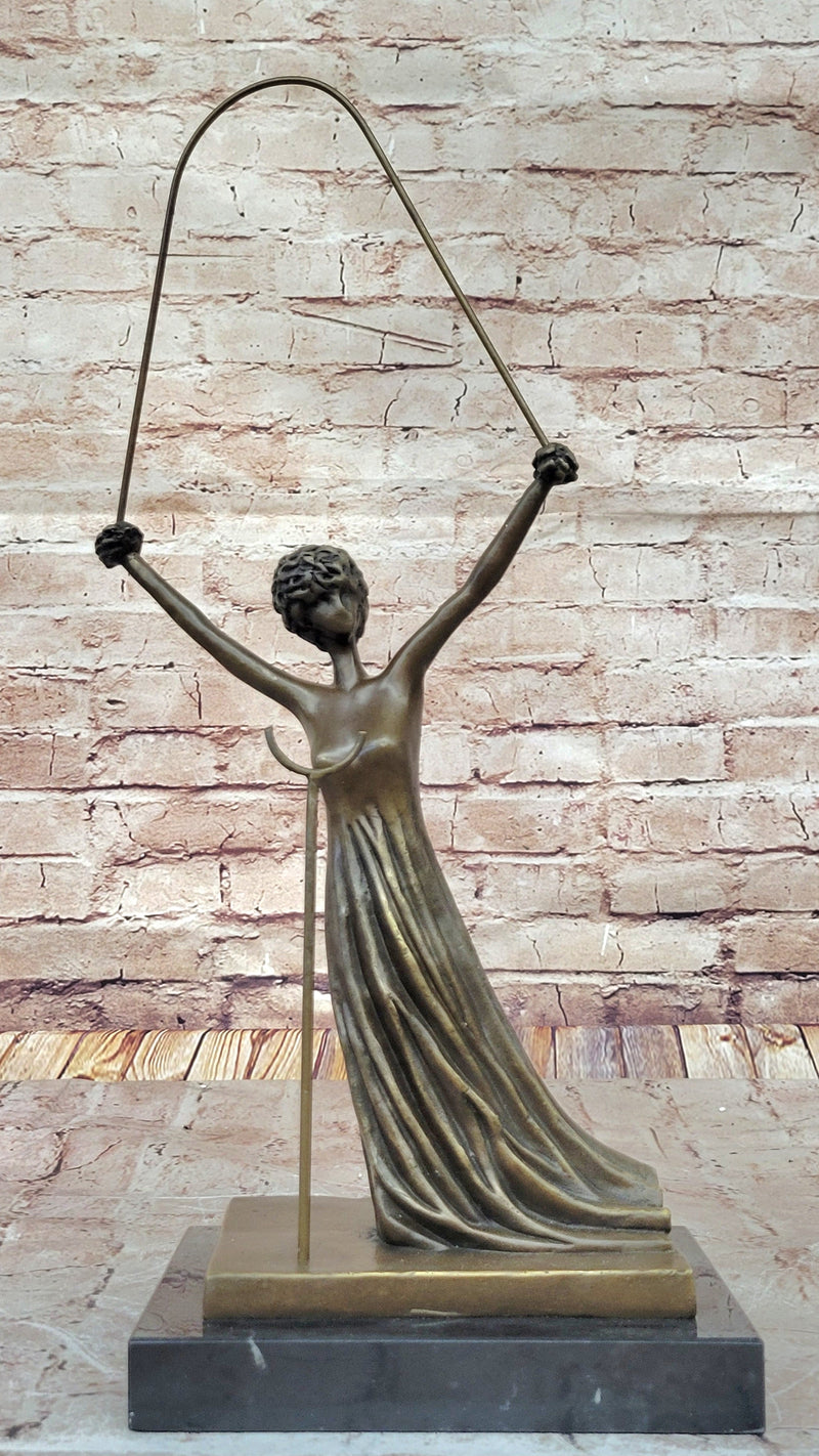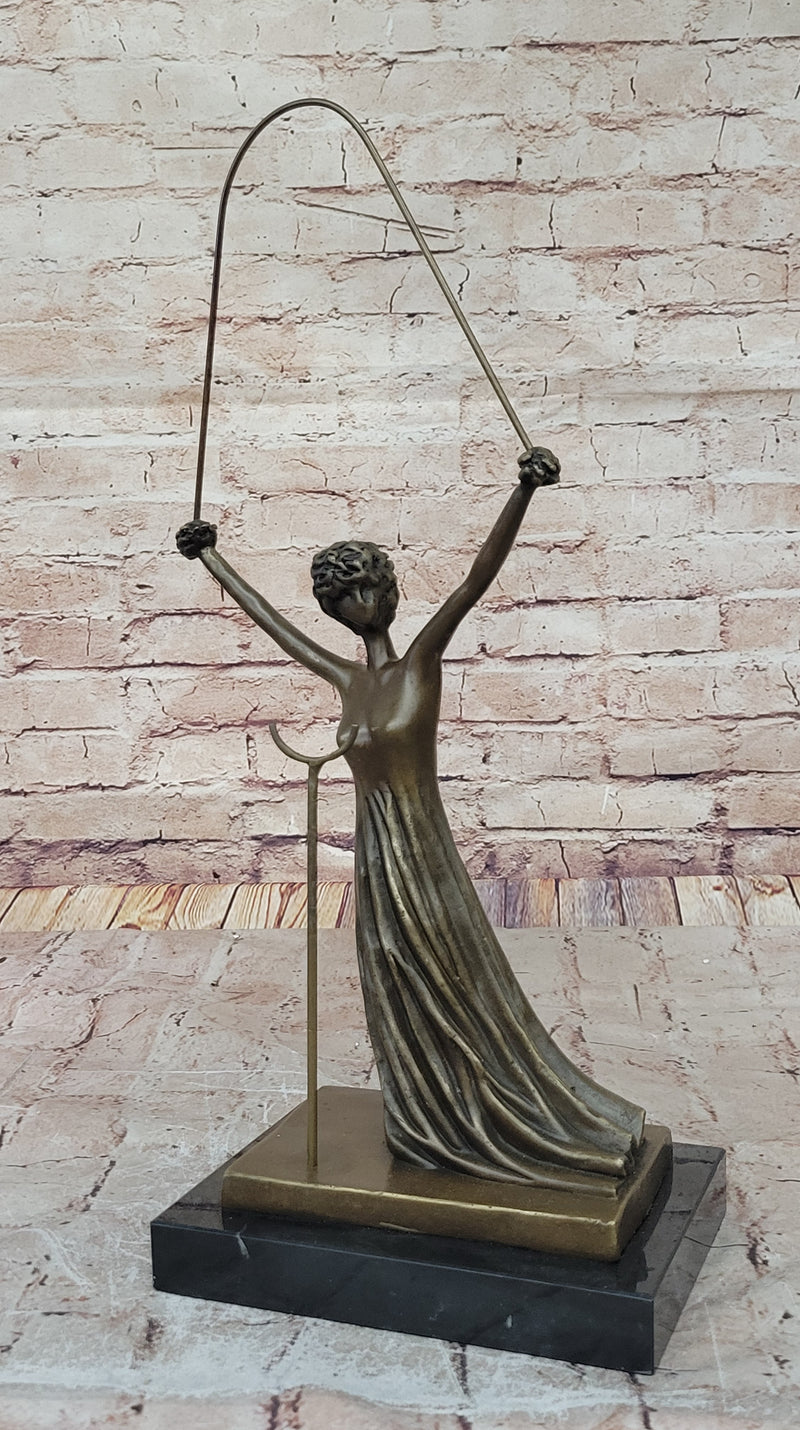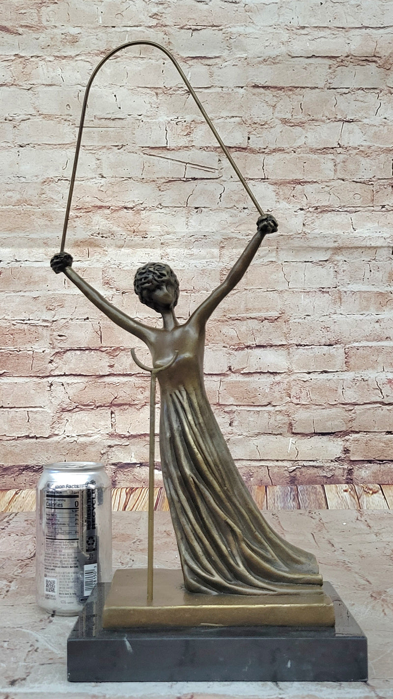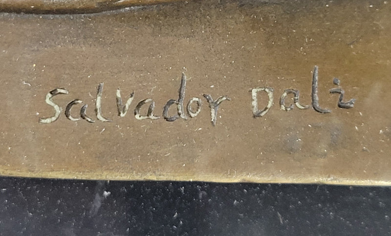Experience the wonder and magic of Alice in Wonderland with this stunning bronze sculpture by the legendary Salvador Dali. Alice, one of Dali's favorite art images, captures the essence of childish naivety and sincerity, and explains the confusion of the surrealist world. This eternal girl meets the inhabitants of this world fearlessly, emerging with the same clear worldview. This unique sculpture showcases Alice with intricately interwoven cords of fiction and reality, symbolized by a rope. Alice's hands and hair have been transformed into beautiful roses, representing her burgeoning womanhood. The sculpture has been cast using the ancient "Lost Wax Method" stained in brown patina, ensuring every detail is captured perfectly. This sculpture is 100% handmade and 100% bronze, mounted atop a black marble base, adding to the elegance of this stunning piece of art. It is signed by the great Salvador Dali, making it a highly sought-after collector's item. If you are a fan of Dali's unique and surreal style or simply looking for a beautiful and imaginative piece of art to add to your collection, this Alice in Wonderland bronze sculpture is a must-have. It is a timeless piece of art that is sure to capture the hearts and imagination of art lovers for generations to come.