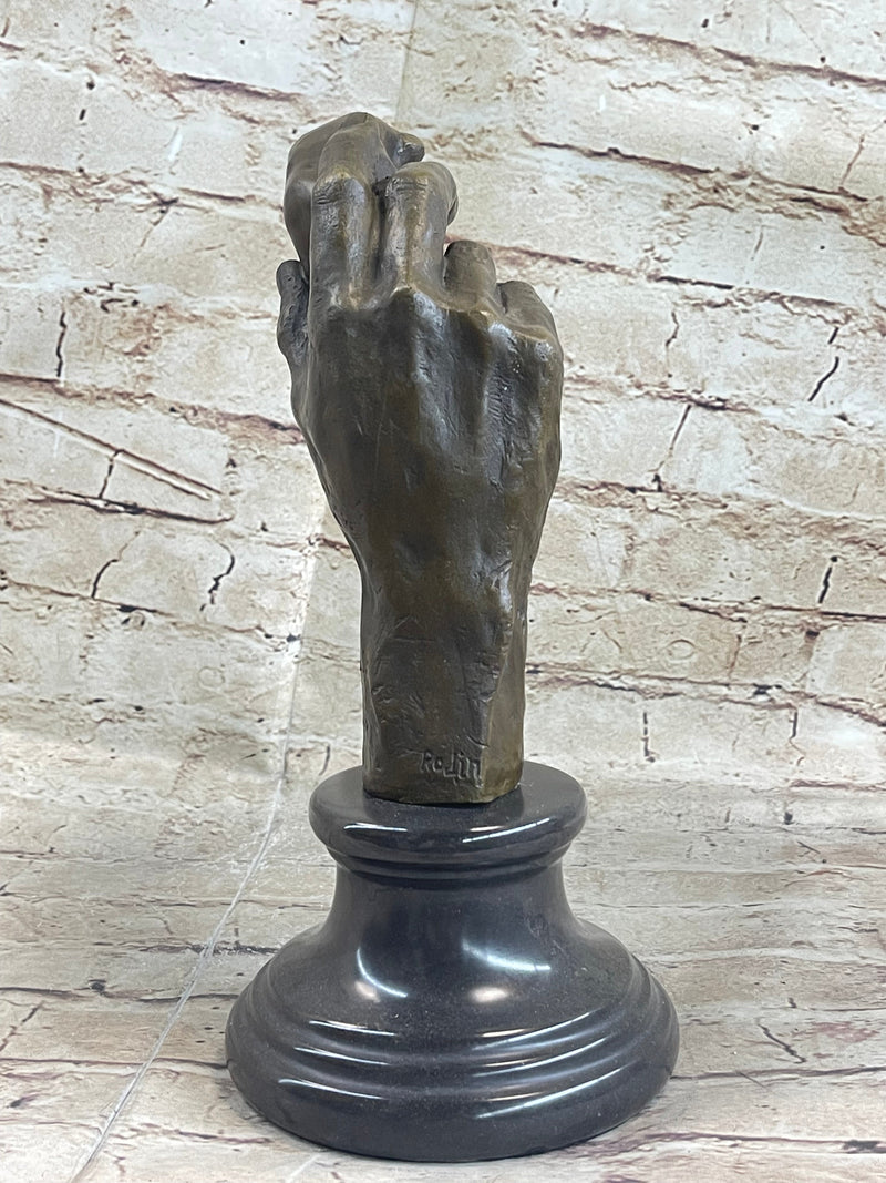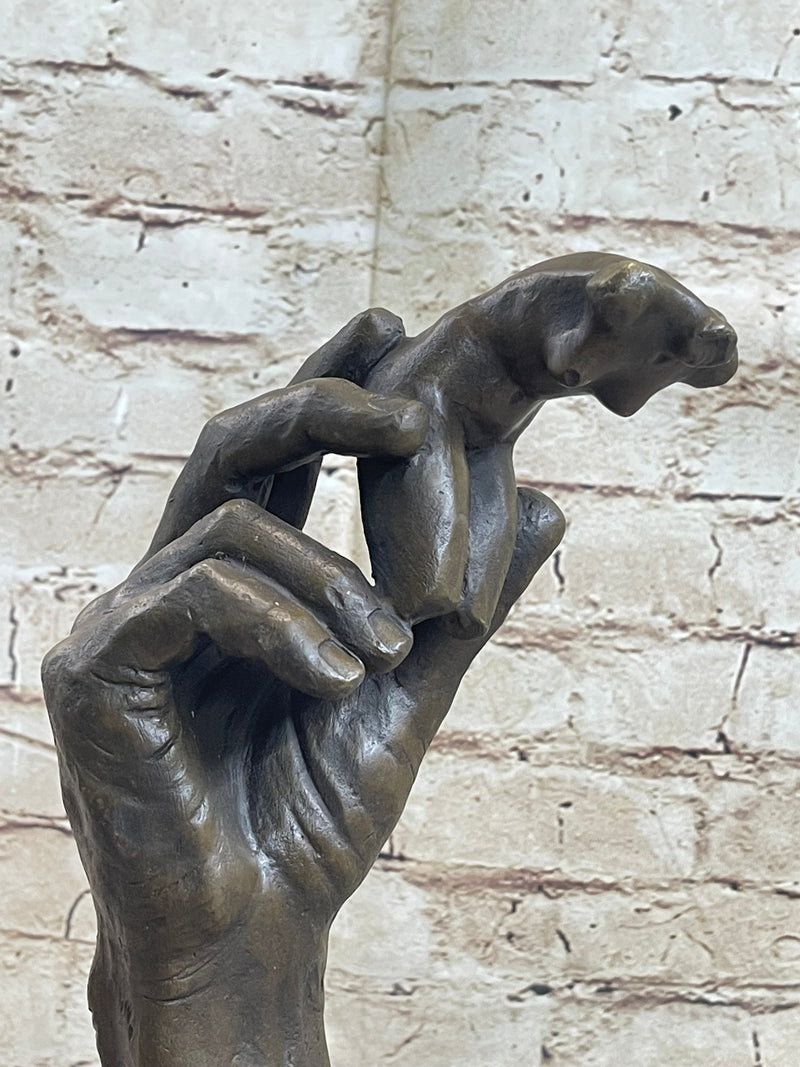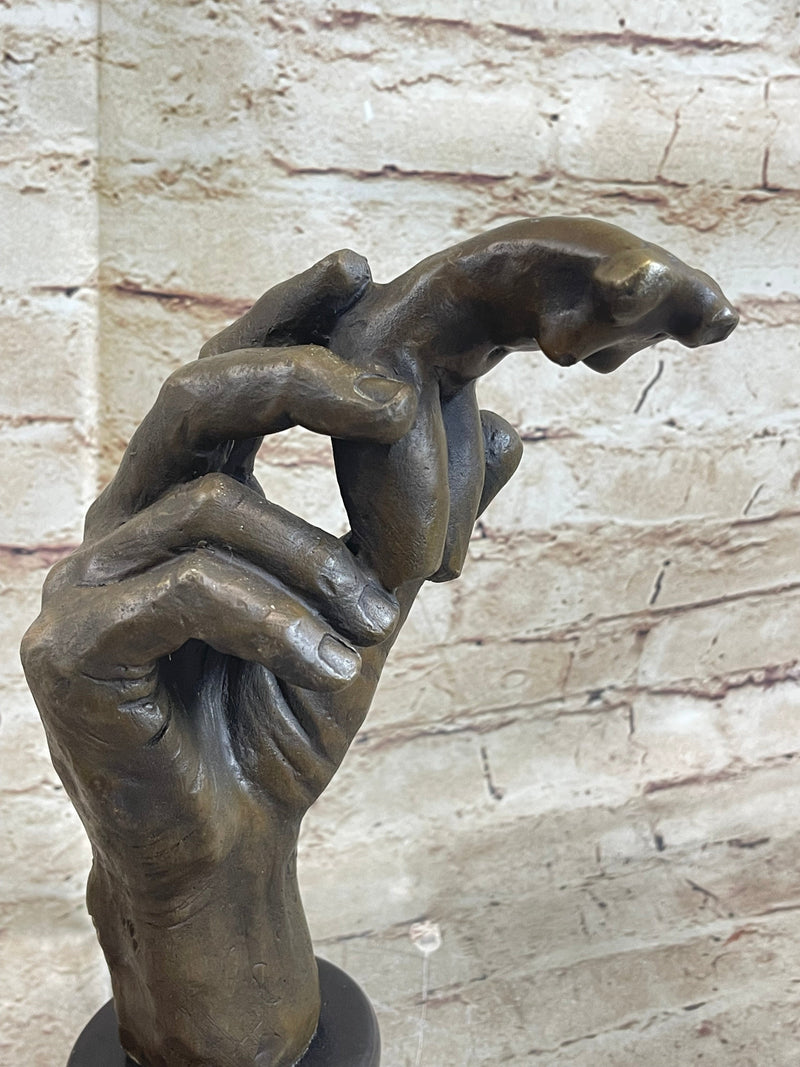 As an extraordinary tribute to Rodin's artistic vision, the Hand of Rodin holds a special significance in the realm of art collections. Mounted on a black marble base with a brown patina finish, this captivating sculpture not only enchants viewers with its evocative beauty but also serves as a timeless reminder of Rodin's enduring influence and mastery in the art of sculpting.