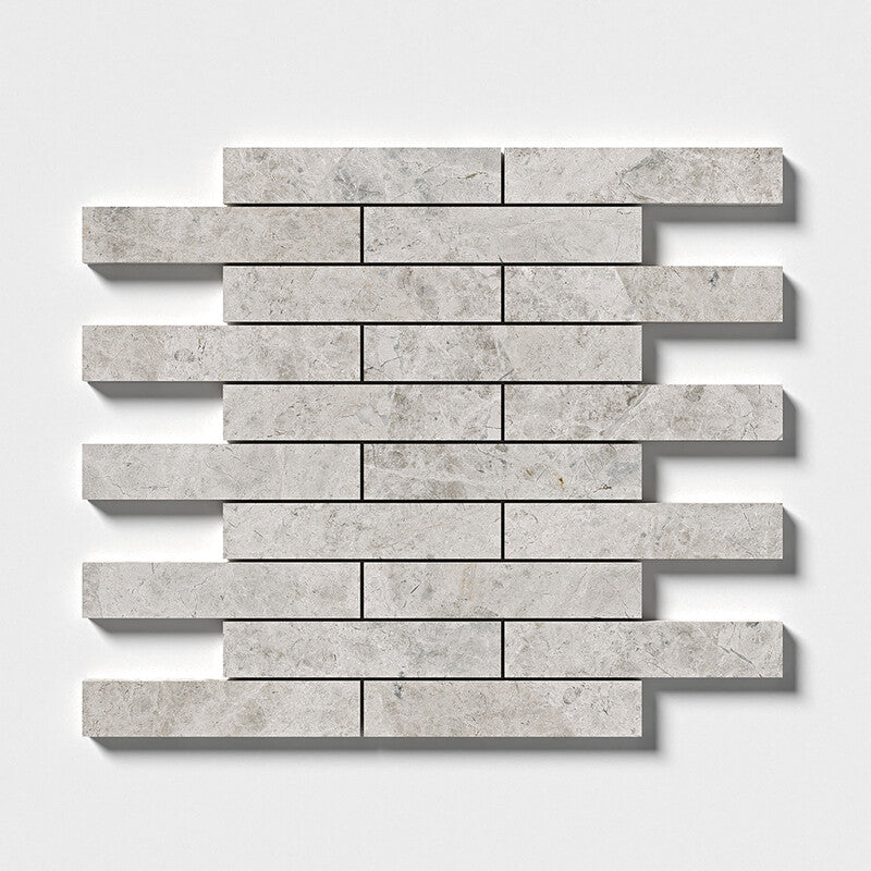 Silver light 12"x12" Honed 1 1/4x6 Marble Mosaic