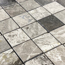 Silver Shadow Marble 2"x2" Honed on 12" x 12" Mesh Mosaic Tile has small depressions and crevices within each stone to project a modern and natural look.