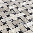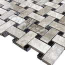 Silver Shadow Marble Basketweave Design on 12" x 12" Mesh Mosaic Tile - Belair Collection