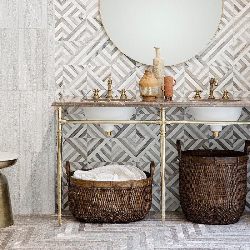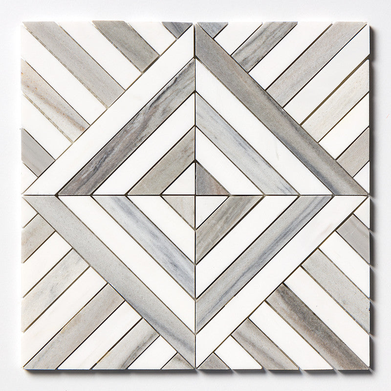 Skyline, Ice white 14 5/16"x14 5/16" Honed Ponte Marble Mosaic offers;