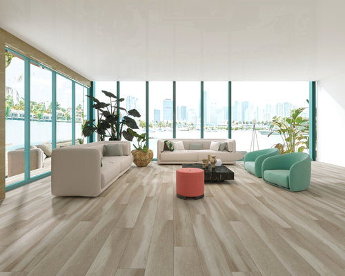 SPC Vinyl Rigid Core 7" Width 60" RL, 6mm Thick, 1.5mm IXPE Renewed Beige Fidelis Floors - Mazzia Collection