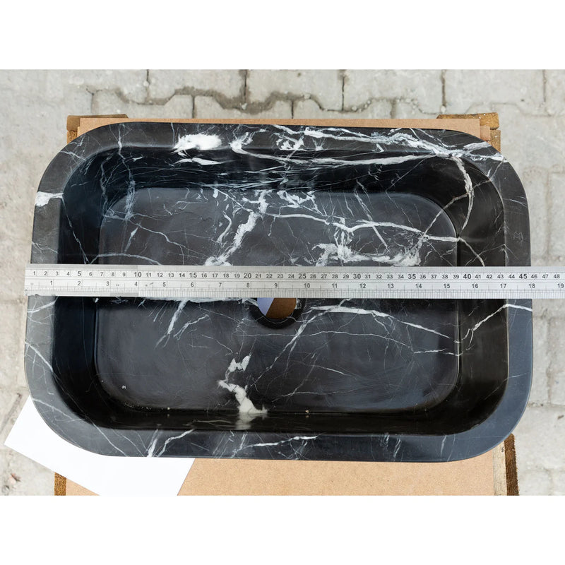 Toros Black Marble Rectangular Wall-mount Bathroom Sink (W)12" (W)18" (H)7"