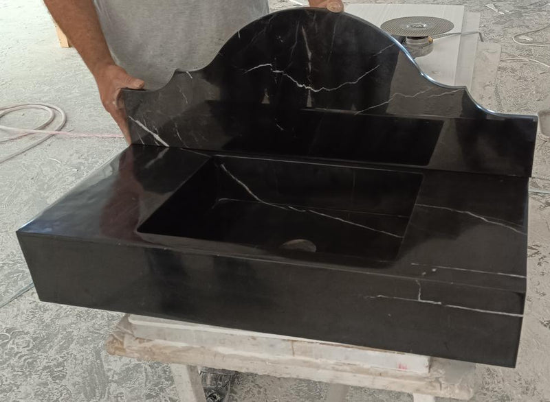 Toros Black Marble Wall-mount Bathroom Sink with Backsplash Polished (W)15" (W)33" (H)6" is a great add on for your bathrooms.