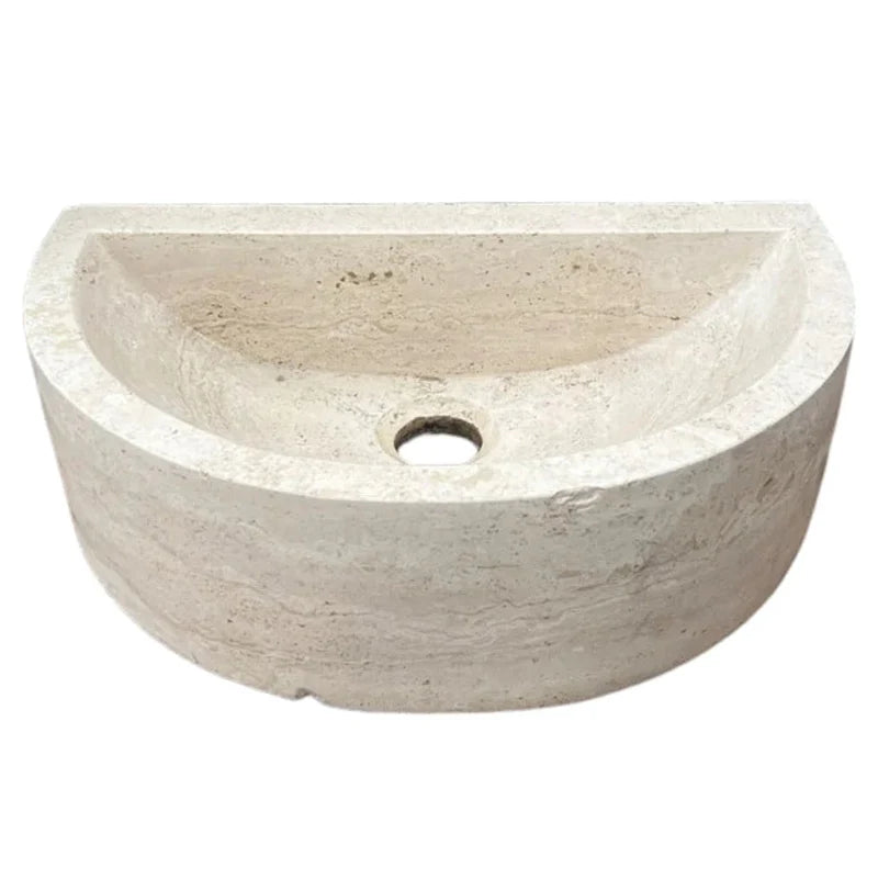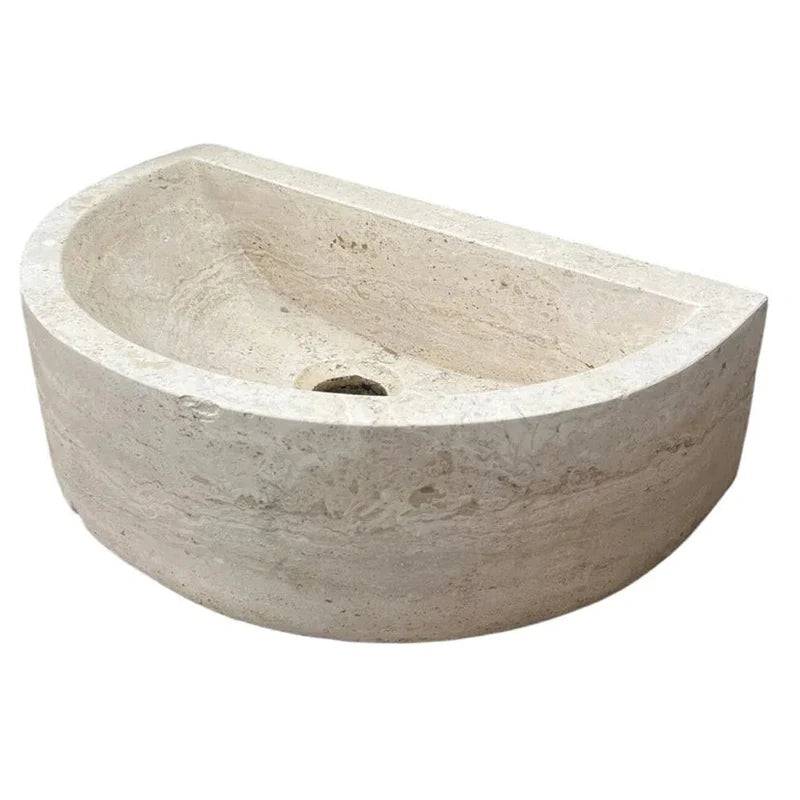 Troia Light Travertine Half Round Wall-mount Bathroom Sink (W)10" (L)16" (H)6"