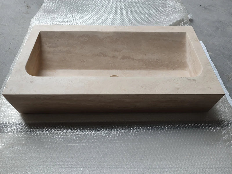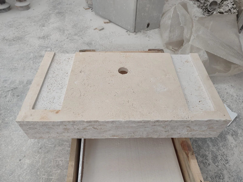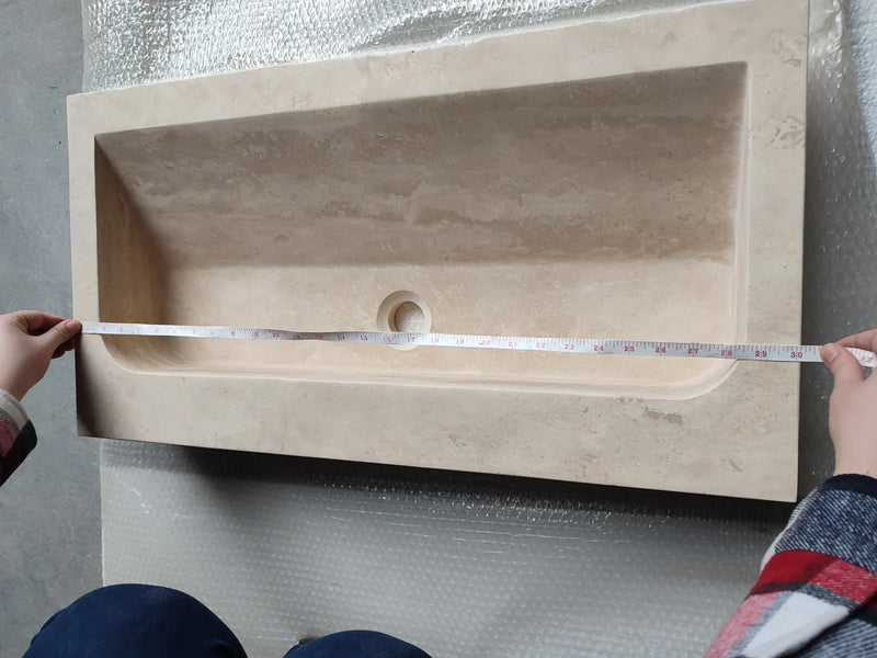 Troia Light Travertine Rustic Rectangular Wall-mount Bathroom Sink (W)16" (L)30" (H)5"