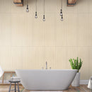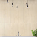Discover sophistication with Blonde Wall Tiles from the UbranSlat Collection. With warm blonde hues, a fluted wood design, and a matte finish, these 16” x 48” ceramic tiles are the ideal choice for a variety of decor styles. These oversized large format tiles are easy to install and feature a modern 3D linear patter that requires minimal grout lines upon installation for a seamless appeal. Whether applying to a bathroom shower surround, kitchen backsplash, or other wall surfaces, this Blonde tile is great for installations in residential and commercial spaces. Elevate your spaces with the magnificence of these expansive tiles.