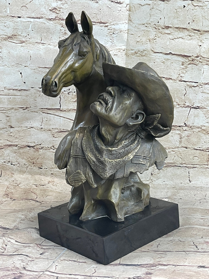 Western Art Old West Cowboy With Horse Bronze Bust Sculpture Marble Statue Decor