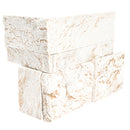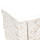 Elevate your spaces with the timeless allure of Royal White Ledger Corner. this selection boasts a durable quartzite composition and a captivating split-face finish. Its white background with beige striations creates a sophisticated and versatile design, making it perfect for accent walls and fireplace surrounds indoors, as well as for cladding structures, support beams, and retaining walls outdoors. Royal White seamlessly blends elegance with durability, offering a versatile solution for both interior and exterior projects. Complete your design with matching corners, ensuring a polished and cohesive finish that exemplifies the enduring charm of Royal White's refined aesthetics.