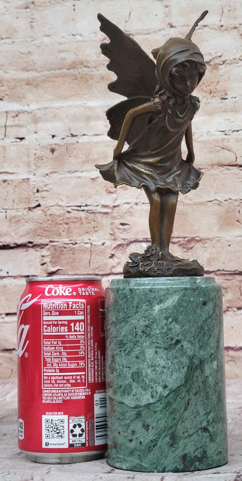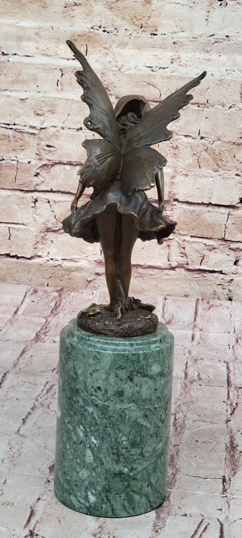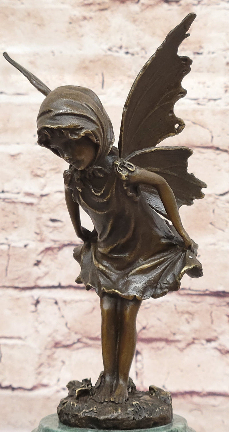 Young Fairy Angel Girl Child Bronze Sculpture Figure on Green Marble Base