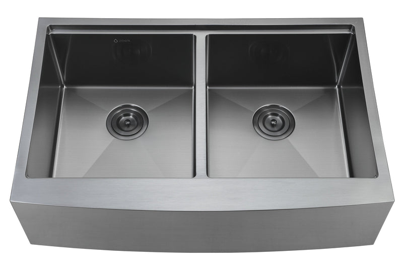 Zeek 33" Farmhouse Workstation Double Bowl Gunmetal Matte Black Kitchen Sink With Accessories PVD Nano Tech Coating ENZO ZA-B552